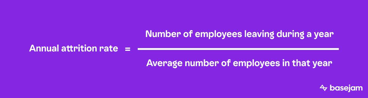 To calculate annual attrition rate, divide the number of employees that have left within the calendar year by the average number of employees in that year.